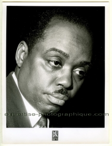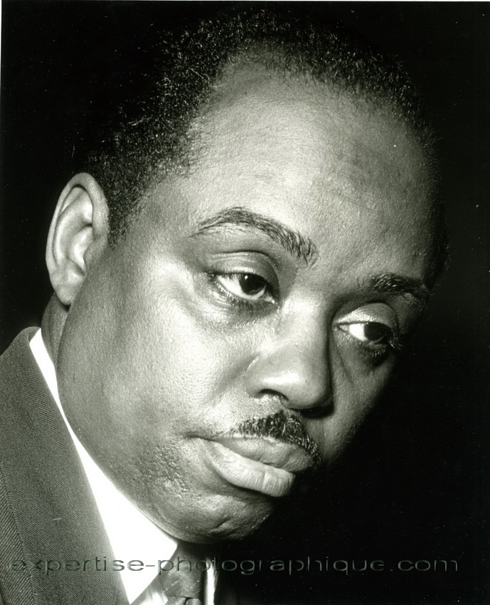 Le Jazzman Sammy Price (1908 – 1992), vers 1960. Tirage argentique d’époque 20,5 x 16,6 cm sur feuille 24 x 18,1 cm. Sous l’image, sigle : « INR T.V. ». Au dos, timbre humide : « Tous droits réservés R.Kayaert photographe 47, rue Mercelis Bruxelles ».