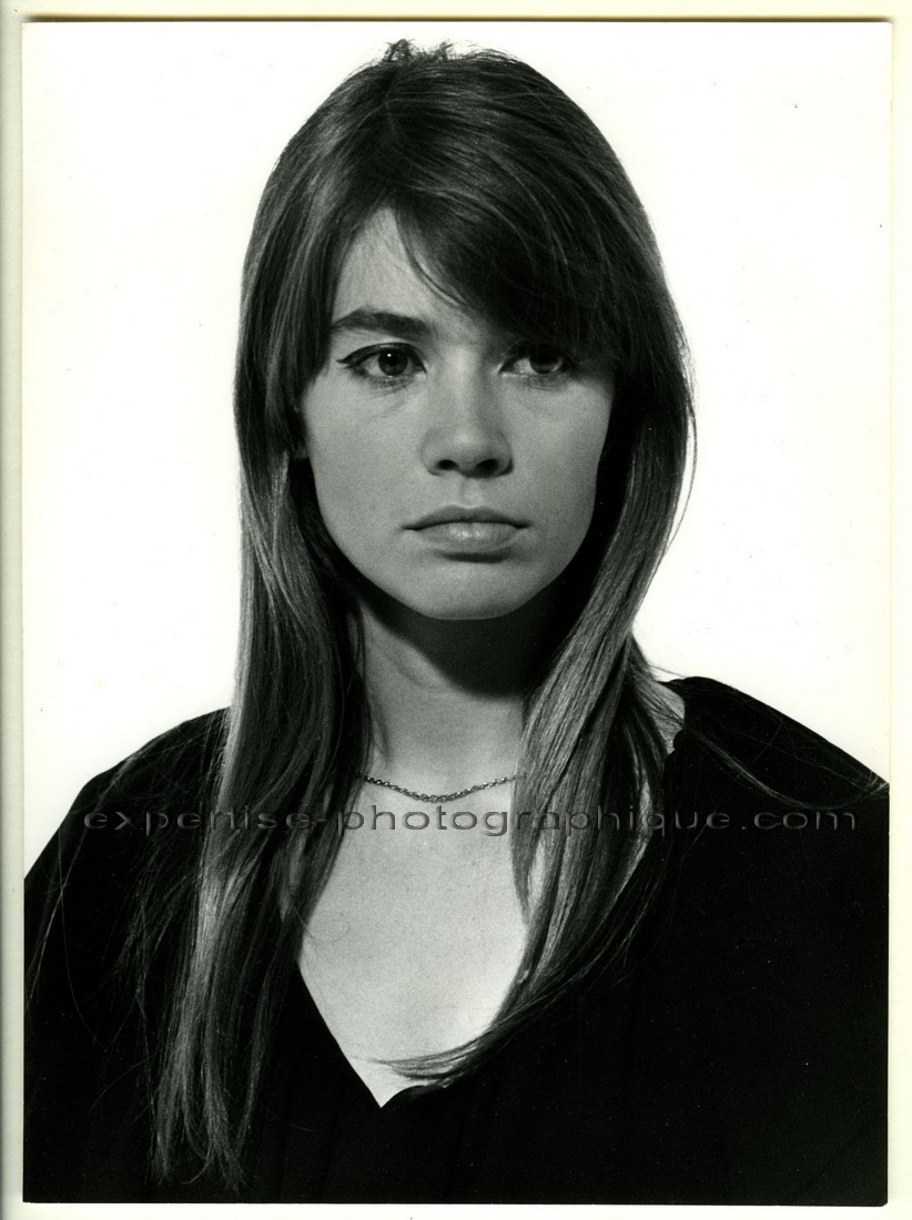Portrait de Françoise Hardy, 1968. Tirage argentique dâépoque. Au dos, timbre humide du photographe.