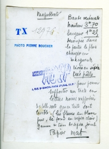 ![]() | Fleurs en série, publicité vers 1935Pierre BOUCHER (1908-2000)Fleurs en série, publicité vers 1935-1945. Tirage argentique dâépoque. Au dos, timbre humide du photographe, timbre humide de lâagence ADEP (vraisemblablement ajouté postérieurement) et longues indications manuscrites pour la réalisation dâun tirage publicitaire géant (3,70 x 1,25 mètres). Lâaccumulation dâun sujet â ici, les marguerites â allant jusquâà lâabstraction est typique du style avant-gardiste de lâépoque, la Nouvelle vision. Dimensions : 18,1 x 12,9 cm. 645 euros. Référence 120 Retour à la galerie |