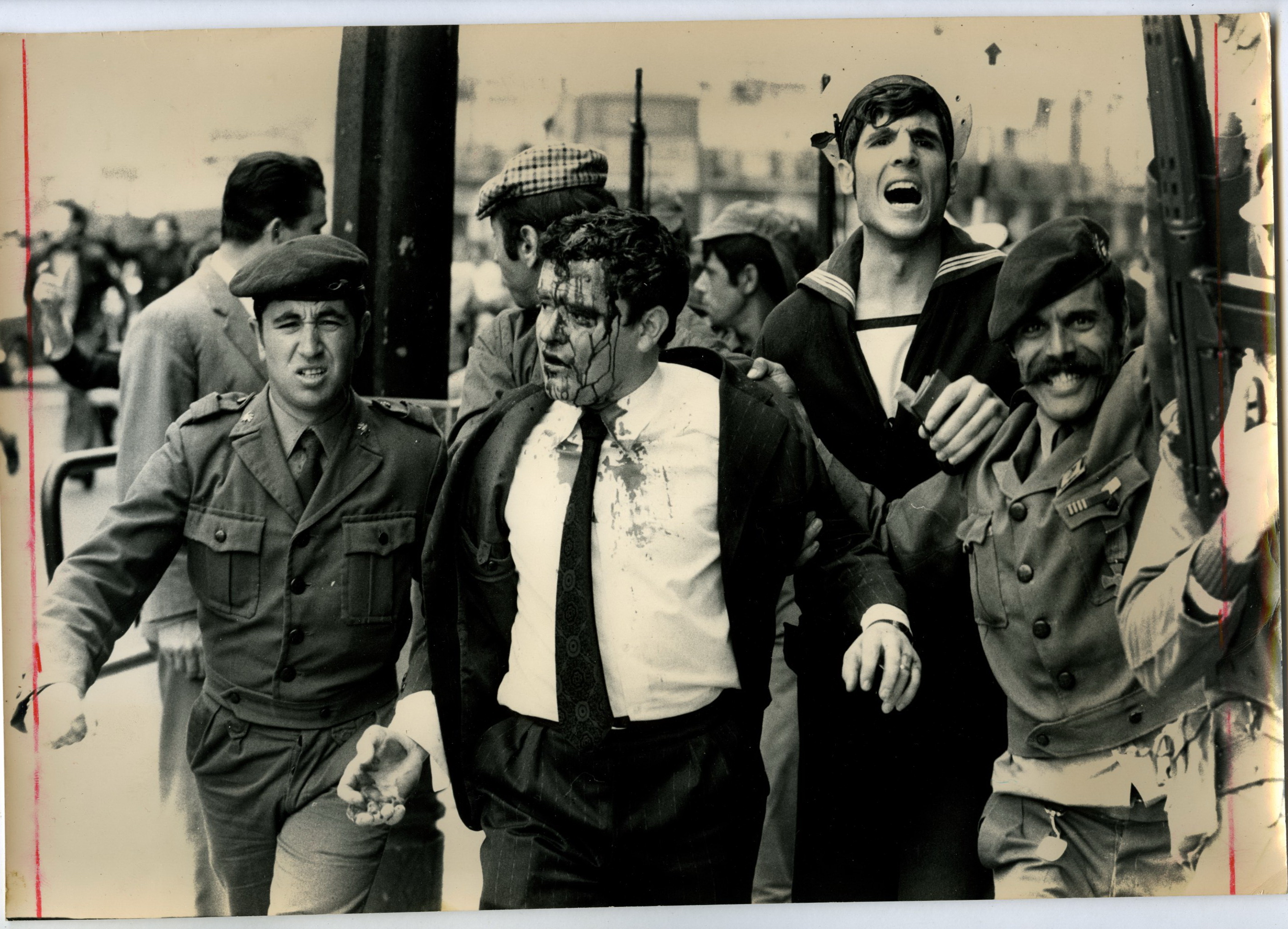 | Collectif Portugal, Révolution des Åillets : sept photographies, 1974-1975. Tirages argentiques dâépoque, de 23,7 x 17,8 cm à 21,1 x 29,5 cm. Barricade, De Spinola, Alvaro Cunhal, membre de la PIDE (police politique) protégé du lynchage par lâarmée. Aux dos, timbres humides, légendes dactylographiées ou manuscrites. Cinq photographies de Jacques Haillot et une de Mueller Volkhart. Dimensions : 23,7 x 17,8 cm. 350 euros. Référence 125 Retour à la galerie |