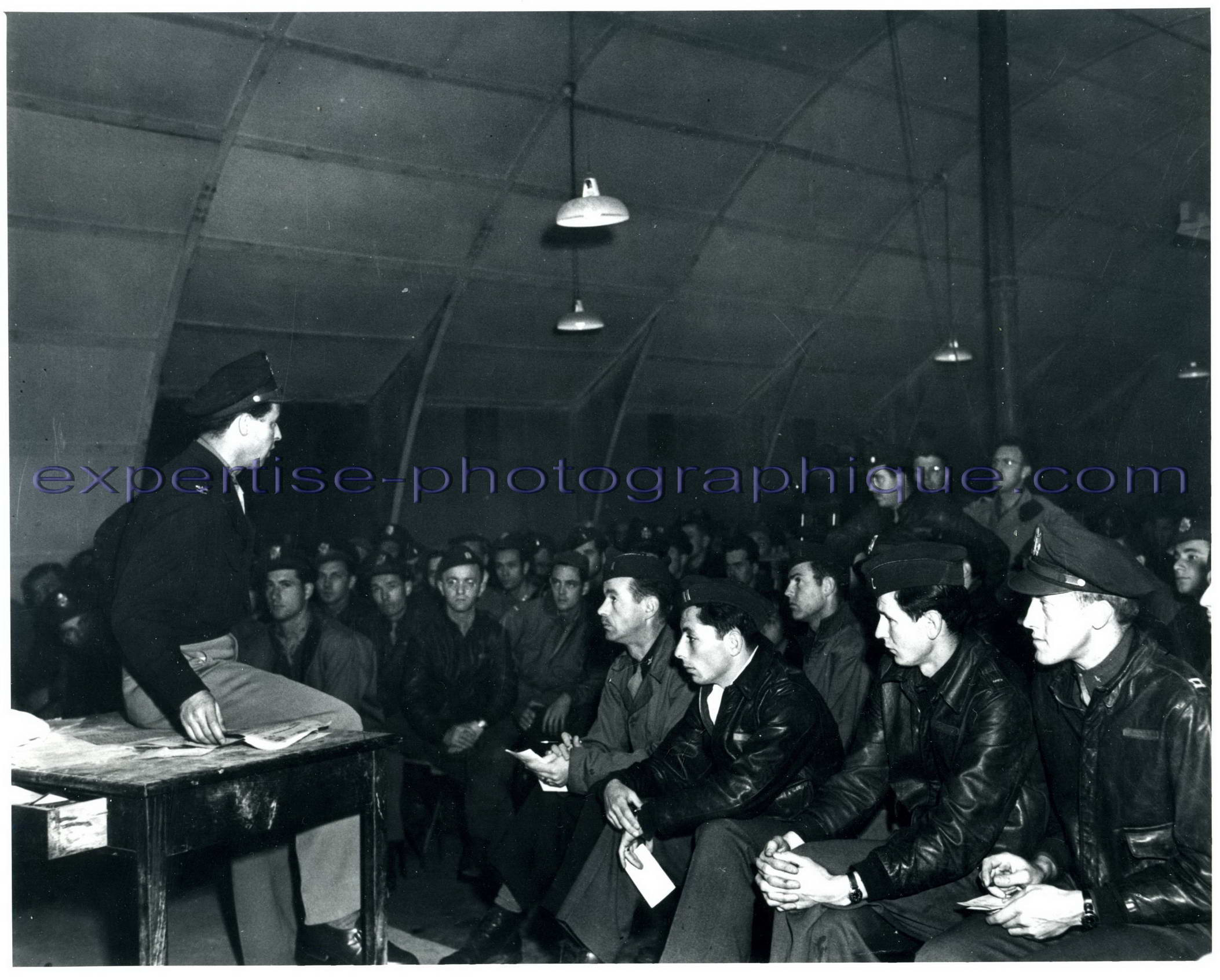 Instructions avant le débarquement, juin 1944. Tirage argentique vers 1965, 19 x 24 cm sur feuille 20,4 x 25,3 cm. Légende et crédit au dos