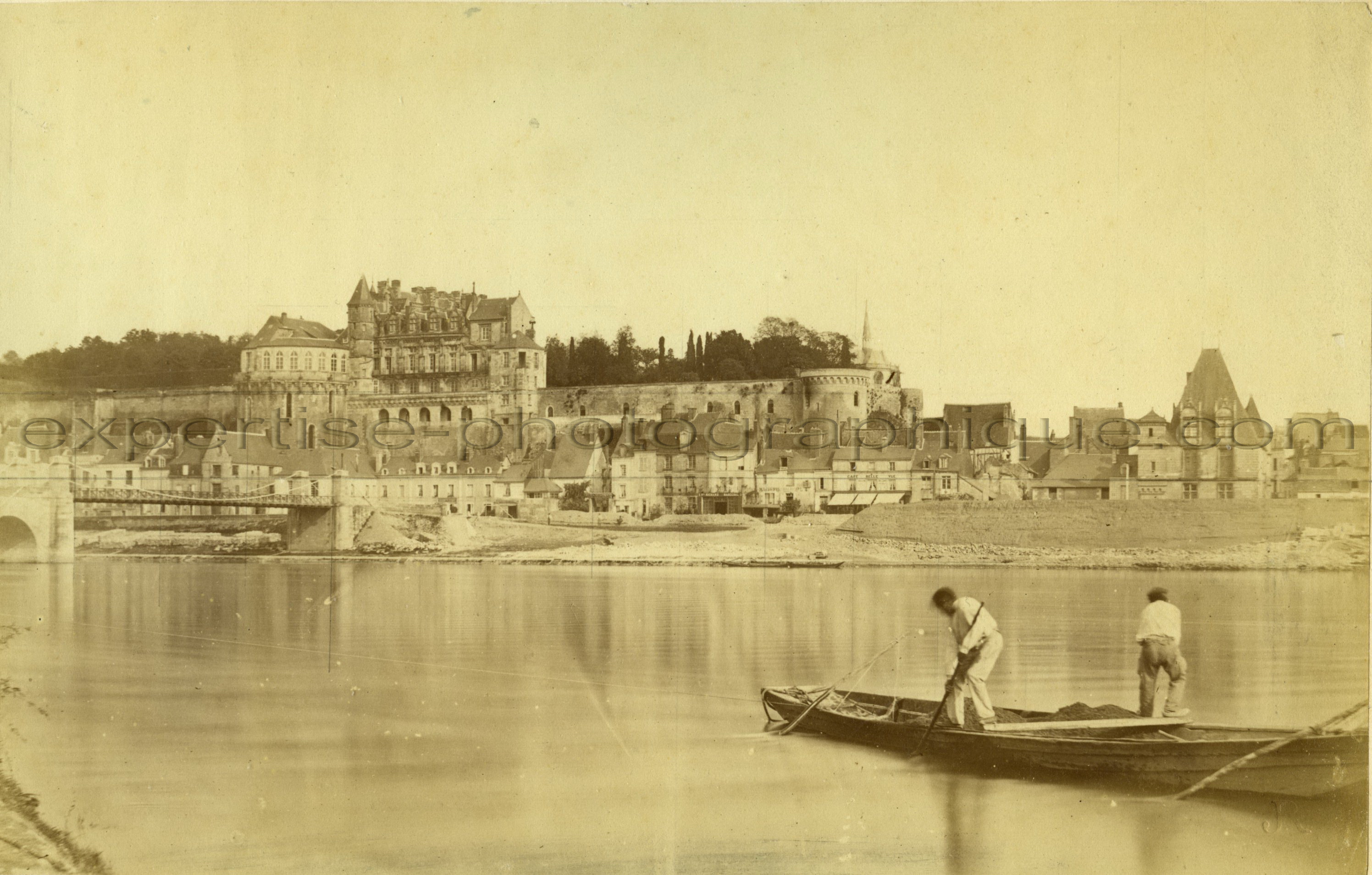 | Jules ROBUCHON (1840-1922) Photographie du château dâAmboise devant la Loire, vers 1865. Tirage albuminé dâépoque 12,6 x 20 cm collé sur un carton 24,2 x 30,9 cm. Timbre à sec du monograme JR sur lâépreuve en bas à droite, timbre à sec sur le carton sous lâépreuve « J. Robuchon photographe » et légende imprimée sur le carton : « Château dâAmboise (Indre et Loire) déposé ». Dimensions : 12,6 x 20 cm. 390 euros. Référence 156 Retour à la galerie |