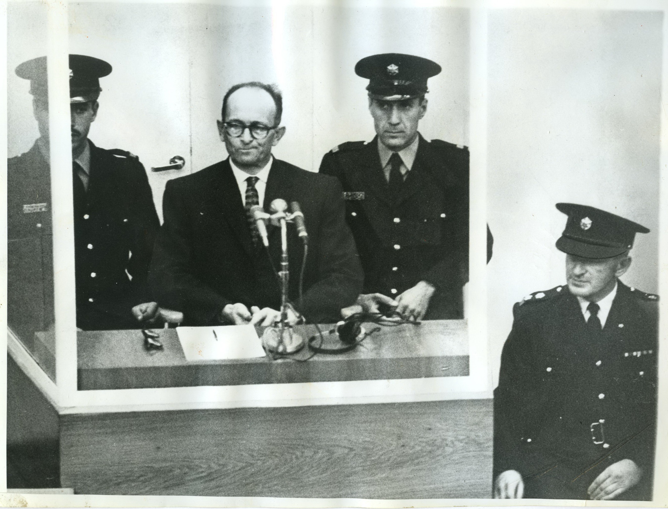 | Anonyme Adolf Eichmann, dirigeant nazi, lors de son procès en Israël, 1961. Tirage argentique dâépoque, 16,7 x 21,7 cm sur feuille 17,7 x 23,3 cm. Coupure de presse afférente au procès collée au dos. Traces de manipulations de l'épreuve. Dimensions : 16,7 x 21,7 cm. 240 euros. Référence 158 Retour à la galerie |