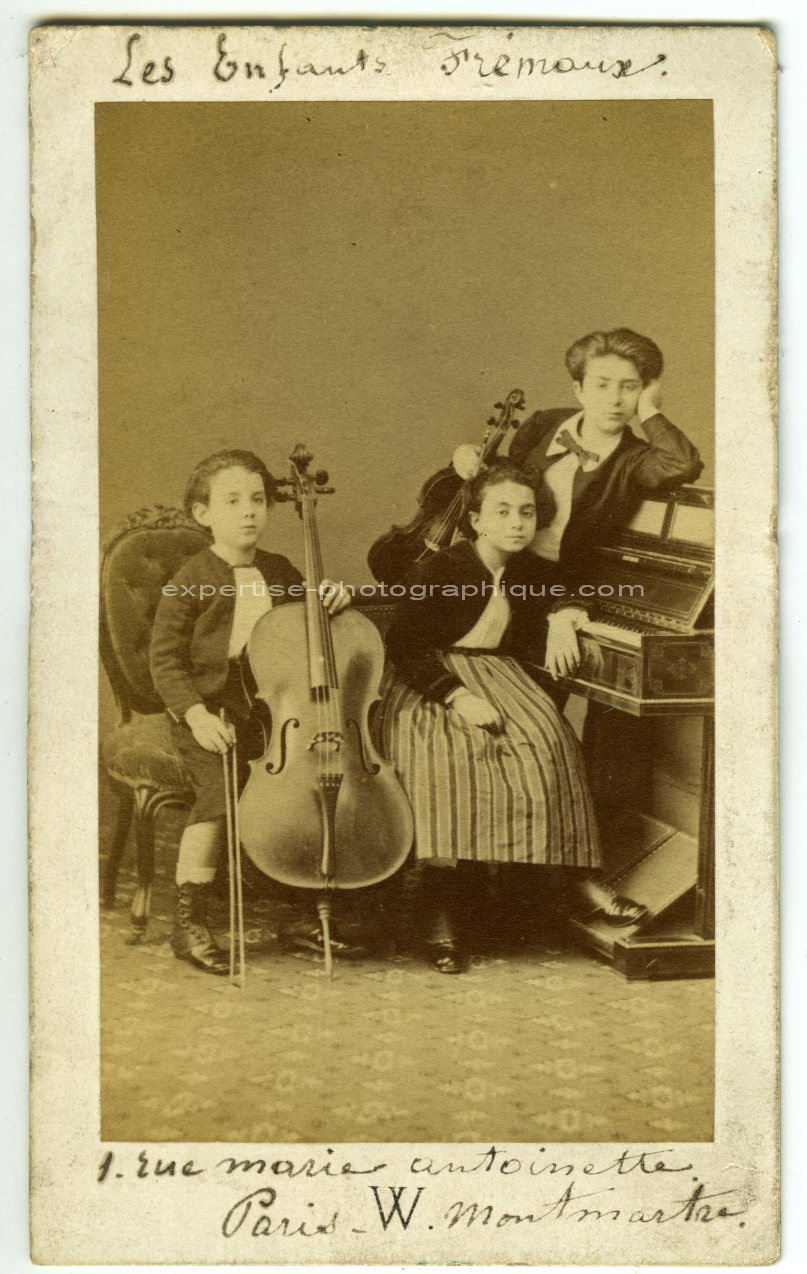 ![]() | Enfants musiciens, vers 1860WALERYEnfants musiciens, vers 1860. Tirage albuminé d'époque, 8,8 x 5,1 cm, collé sur un carton imprimé du nom du photographe.Sur la carton inscriptions manuscrites : "Les enfants Frémaux, 8 rue Marie-Antoinette Paris Montmartre". Il s'agit d'une photographie dite "Carte-de-visite". Le clavier présent à l'image est, non un piano, mais un harmonium. Dimensions : 8,8 x 5,1 cm. 150 euros. Référence 192 Retour à la galerie |