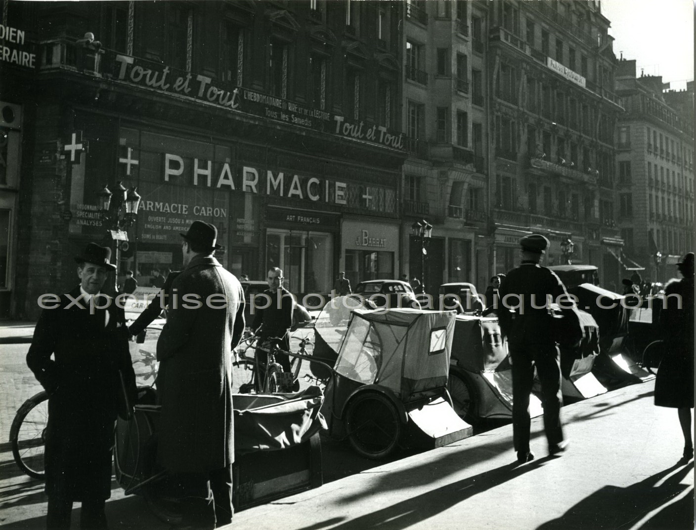 | Roger SCHALL (1904-1995) Paris sous lâOccupation, entre 1940 et 1944. Tirage argentique dâépoque, 18,1 x 23,9 cm. Au dos, timbre humide de Roger Schall. On remarquera les vélos-taxi et la présence dâun officier allemand. Papier photographique Mimosa. Dimensions : 18,1 x 23,9 cm. 430 euros. Référence 211 Retour à la galerie |