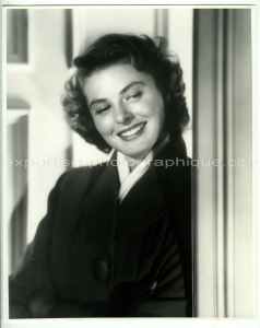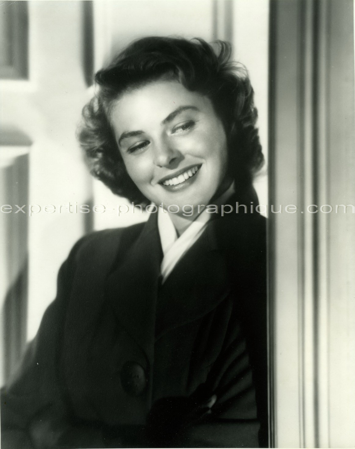 Ingrid Bergman, 1944. Tirage argentique vers 1965, 24,8 x 19,5 cm sur feuille 25,3 x 20,3 cm. Au dos, timbre humide du photographe.